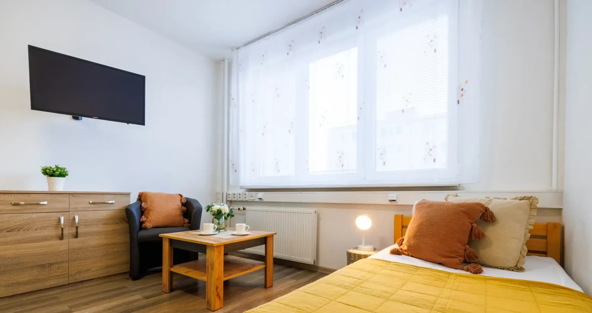 Ideální pro pracovní cesty a krátké pobyty jednotlivců. Komfortní pokoj s vlastní koupelnou v centru města.